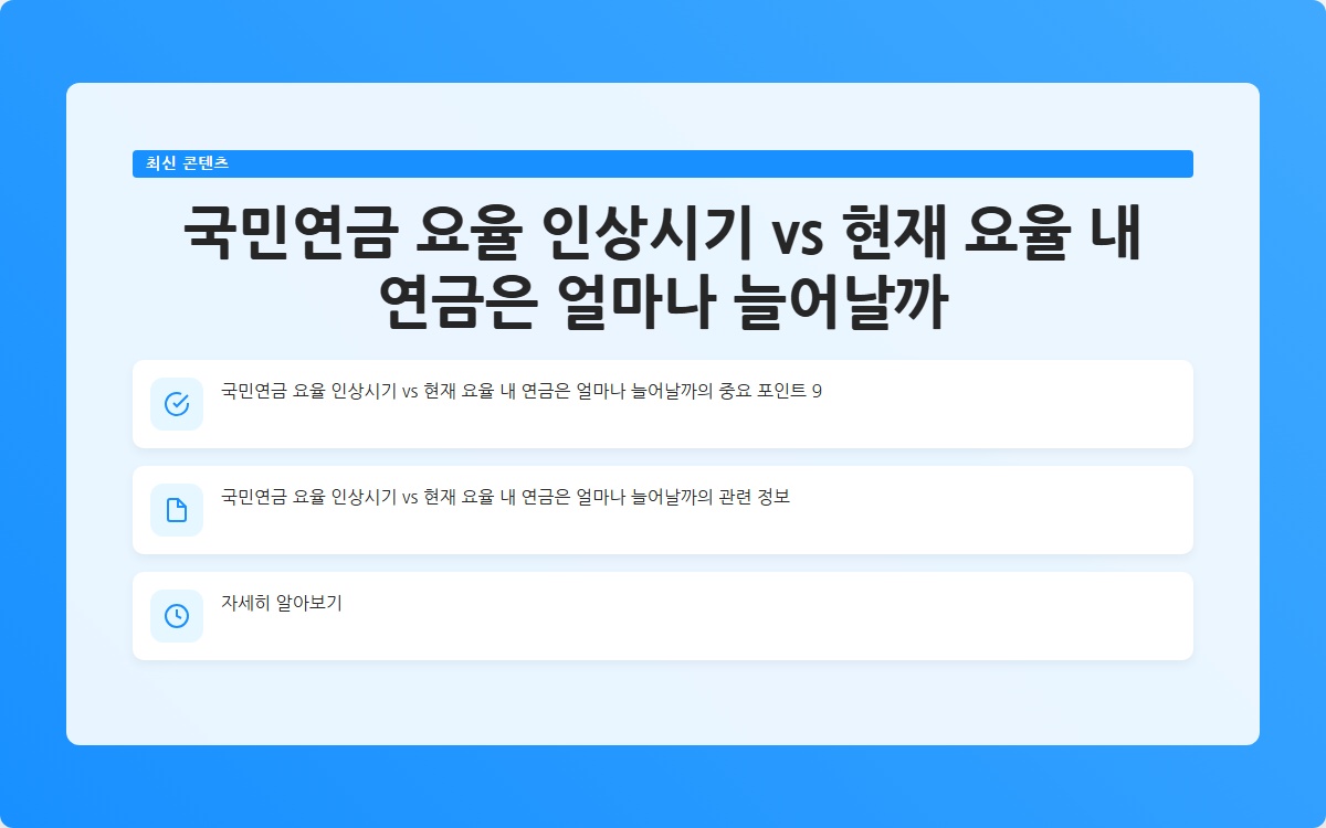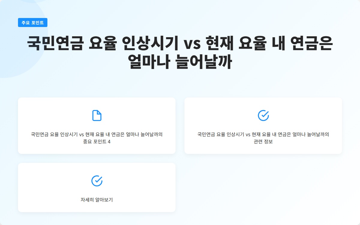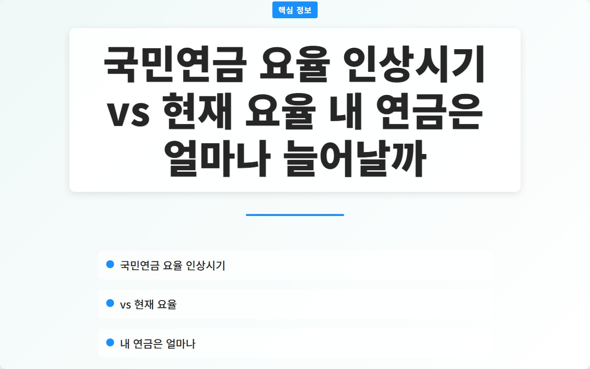 국민연금의 요율 인상에 대한 이해는 우리의 재정 계획에 큰 영향을 미칠 것입니다. 국민연금 개혁안을 통해 보다 나은 미래를 준비할 수 있도록 지금부터 준비하는 것이 중요합니다.