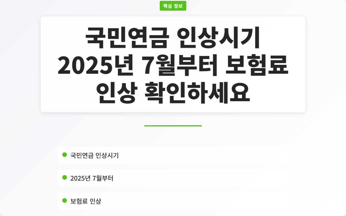 국민연금 인상시기, 국민연금 요율 인상, 국민연금 7월 인상, 국민연금 요율, 노후 준비, 재정 안정성, 보험료, 고소득층, 가입자 영향, 형평성 문제Q. 국민연금 보험료 인상은 언제부터 적용되나요?