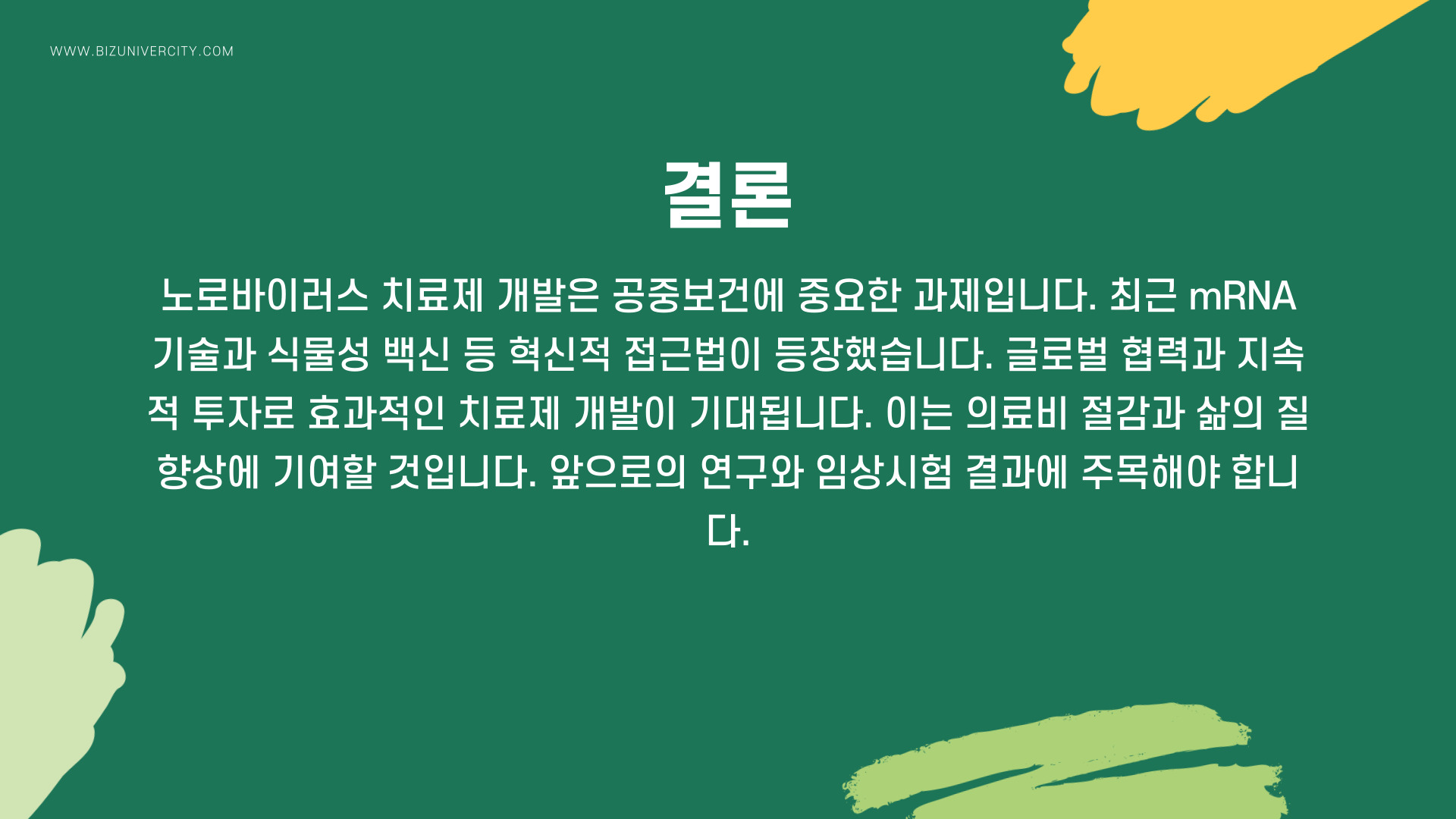 앞으로 노로바이러스에 대한 연구가 더욱 활발히 진행되어, 효과적인 치료제가 개발되기를 기대합니다.