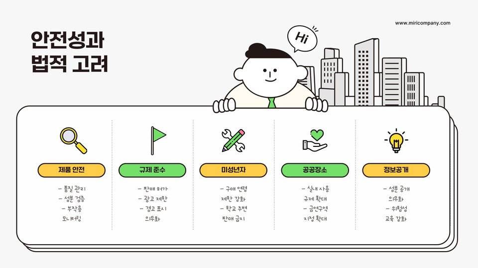 - 니코틴은 중독성이 강해 금연의 큰 장애물.