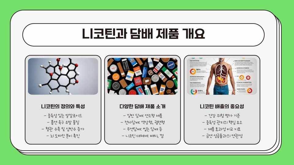 - 니코틴은 중독성이 강해 금연의 큰 장애물.