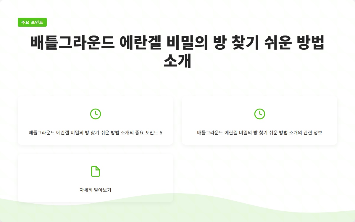 배틀그라운드의 에란겔 맵은 다채로운 환경과 숨겨진 장소들로 가득 차 있습니다. 특히 비밀의 방은 많은 플레이어들이 탐험하고 싶어 하는 매력적인 요소입니다. 이번 포스트에서는 배그 에란겔에서 비밀의 방을 쉽게 찾는 방법을 소개하겠습니다. 이 정보는 초보자뿐만 아니라 숙련된 플레이어에게도 유용할 것입니다.