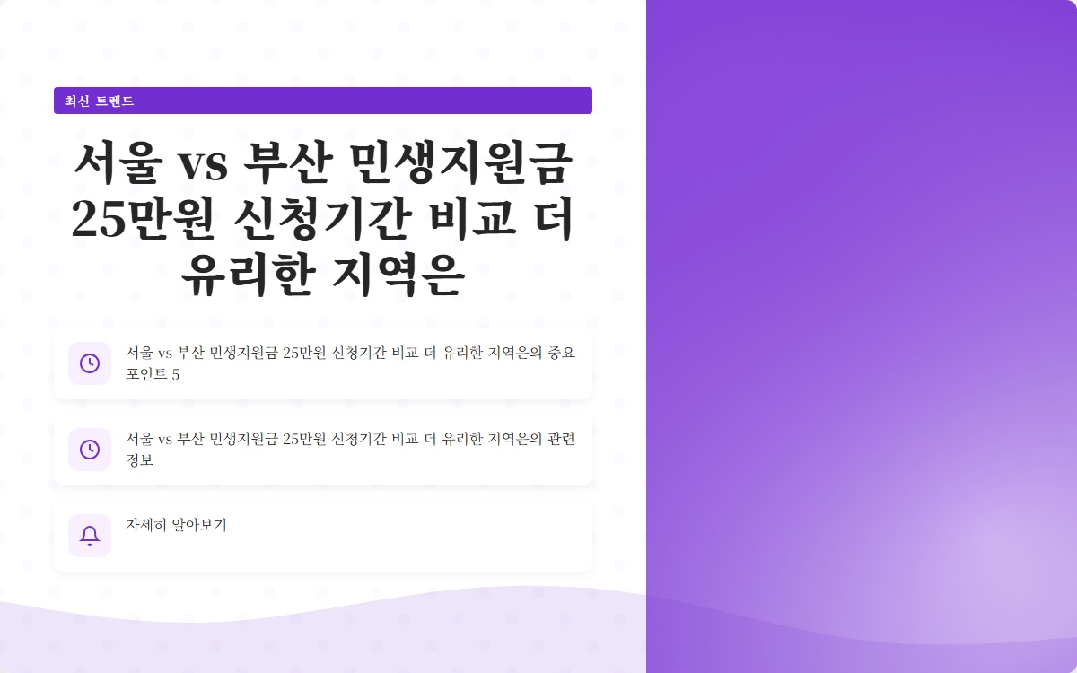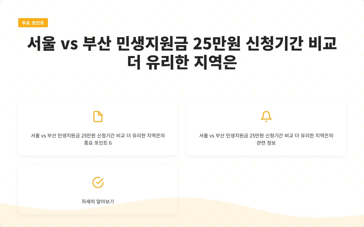 서울 vs 부산 민생지원금 25만원 신청기간 비교 더 유리한 지역은