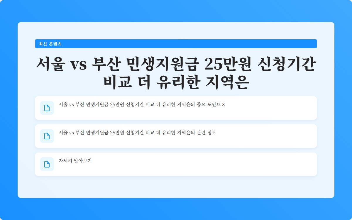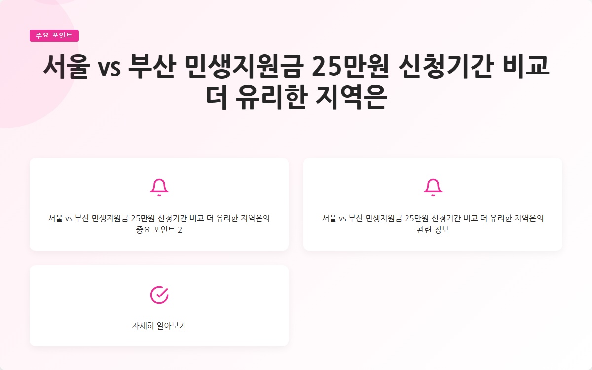 서울 vs 부산 민생지원금 25만원 신청기간 비교 더 유리한 지역은