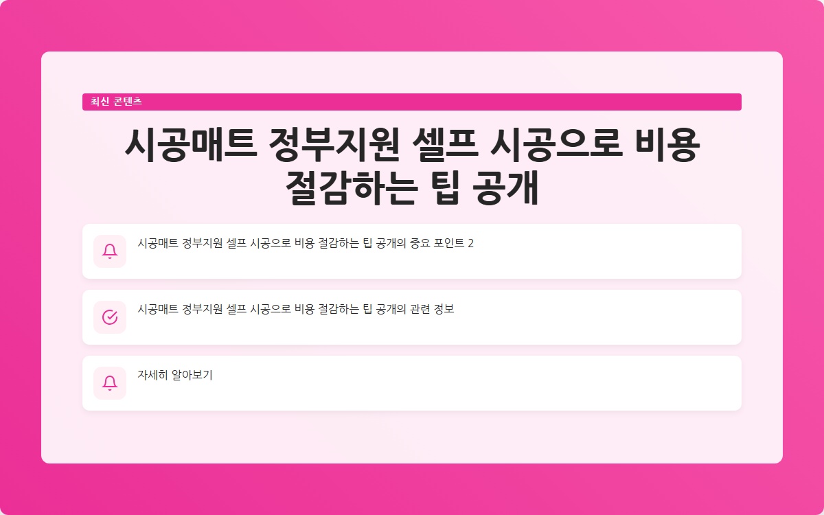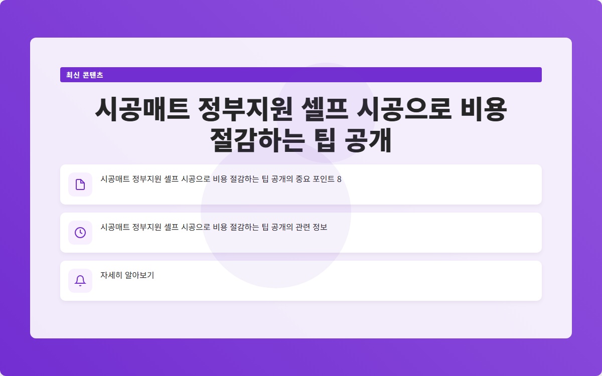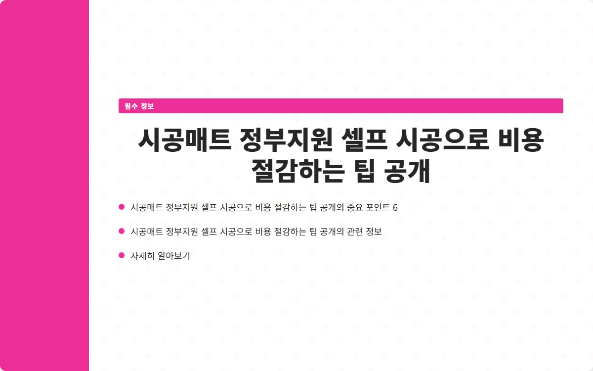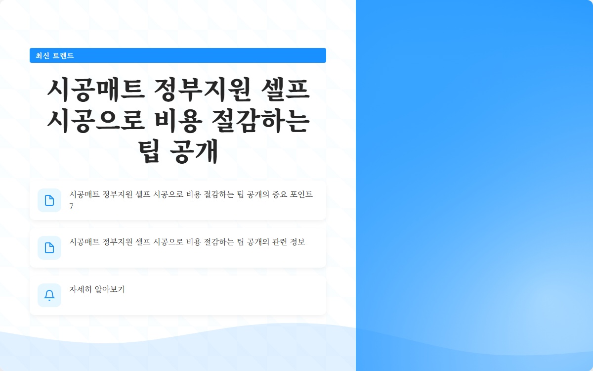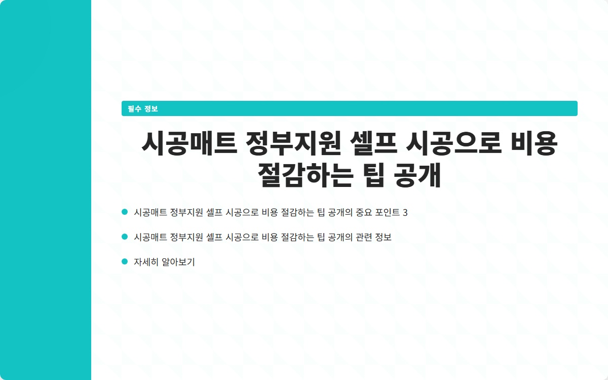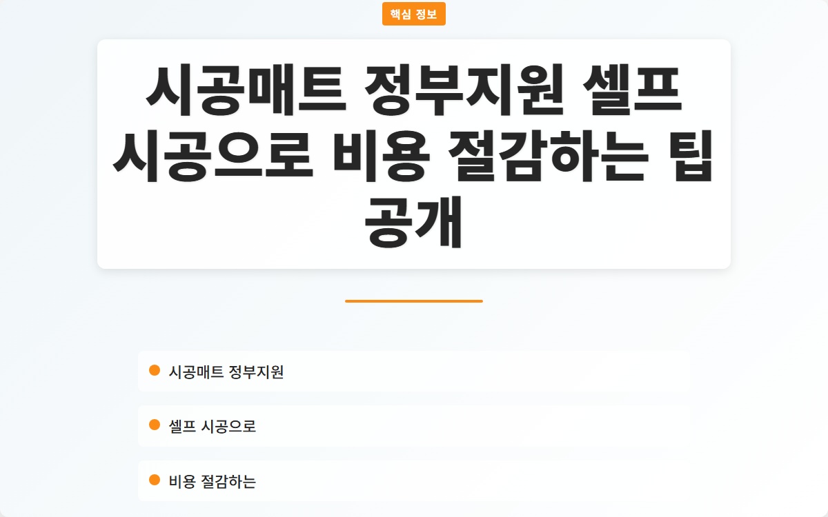 시공매트 정부지원 셀프 시공으로 비용 절감하는 팁 공개