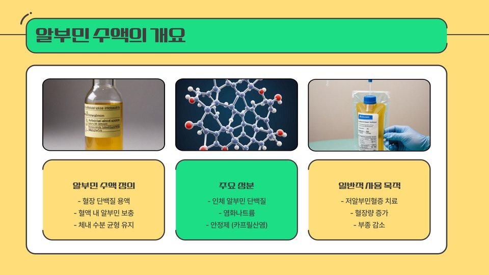 - 알부민 수액은 체내 수분 조절과 영양 공급에 필수적입니다.