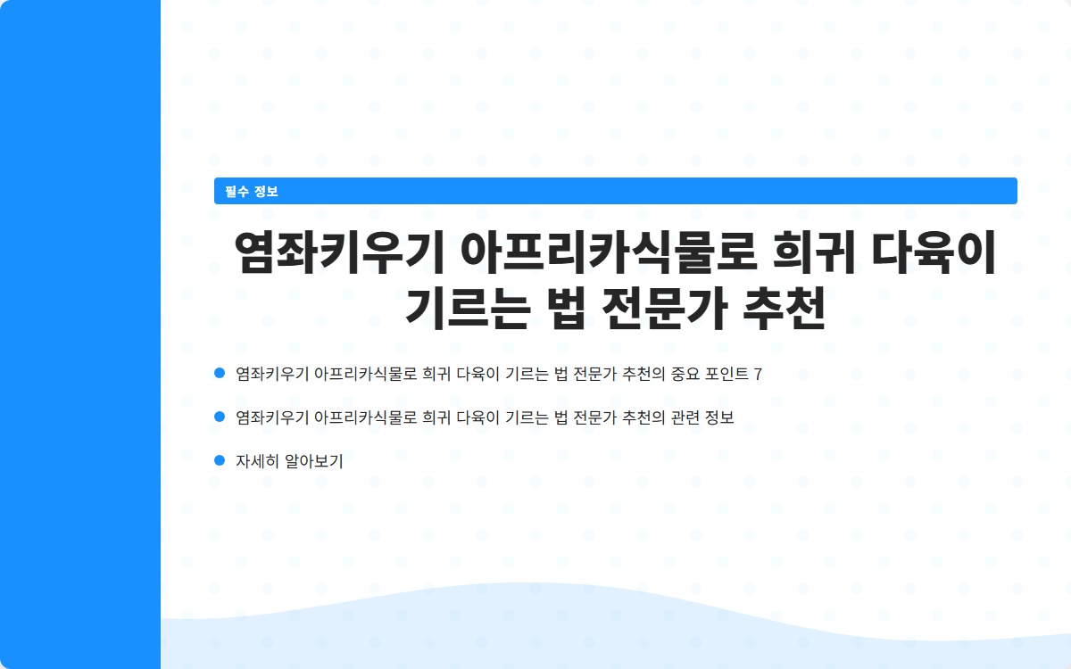 여러분은 염좌키우기에 대한 고민이 있으신가요? 많은 사람들이 이 매력적인 다육 식물을 기르며 어려움을 겪고 있습니다. 하지만 이 글을 통해 염좌를 건강하게 기르는 방법을 배워보세요! 지금 확인해보세요!