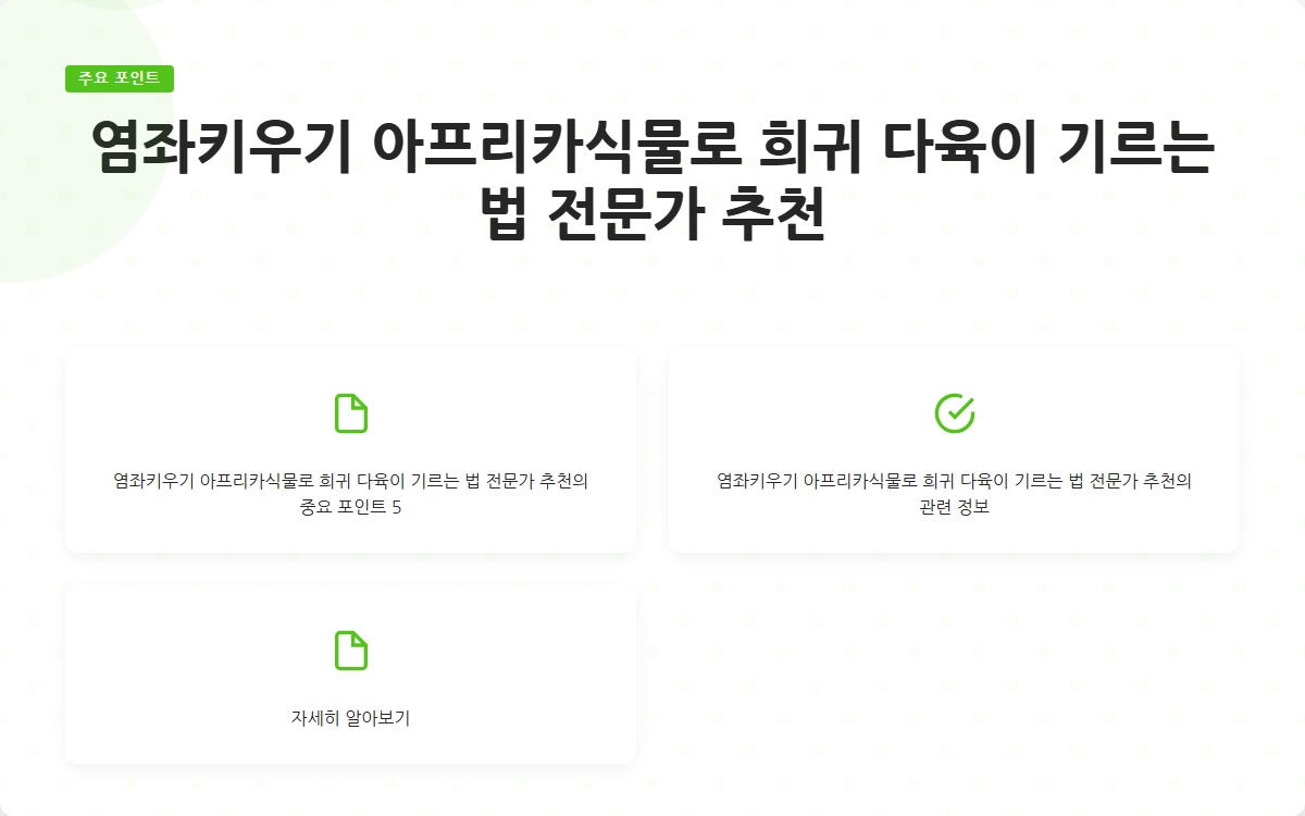 여러분은 염좌키우기에 대한 고민이 있으신가요? 많은 사람들이 이 매력적인 다육 식물을 기르며 어려움을 겪고 있습니다. 하지만 이 글을 통해 염좌를 건강하게 기르는 방법을 배워보세요! 지금 확인해보세요!