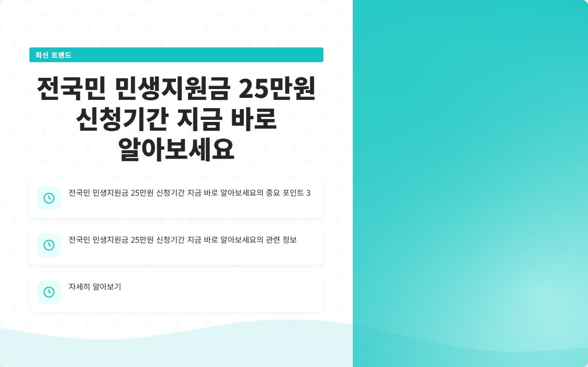 | 전국민 민생지원금 25만원 신청 간편한 절차로 지원받는 방법 (1) | 2025.07.05 |