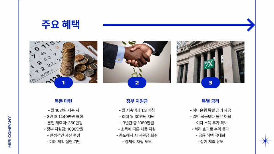 | 정부 지원금 | 저축 금액에 따라 추가 지원 제공 |