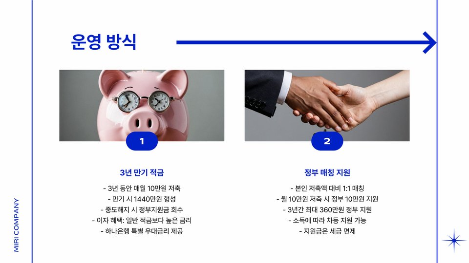 - 매달 일정 금액 저축 시 정부의 추가 지원