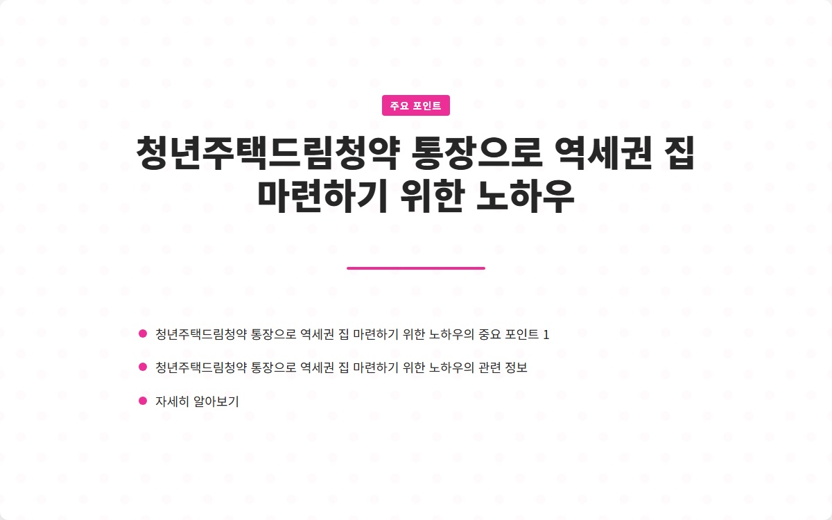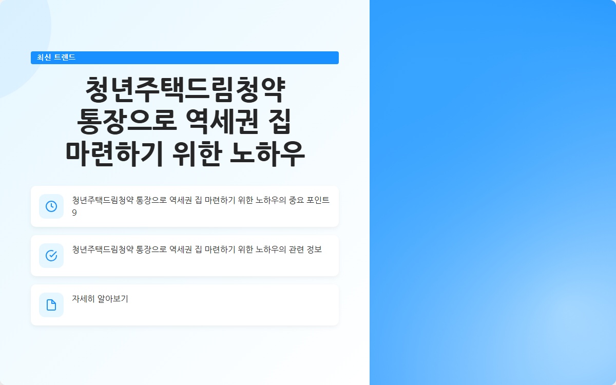 청년주택드림청약 통장으로 역세권 집 마련하기 위한 노하우