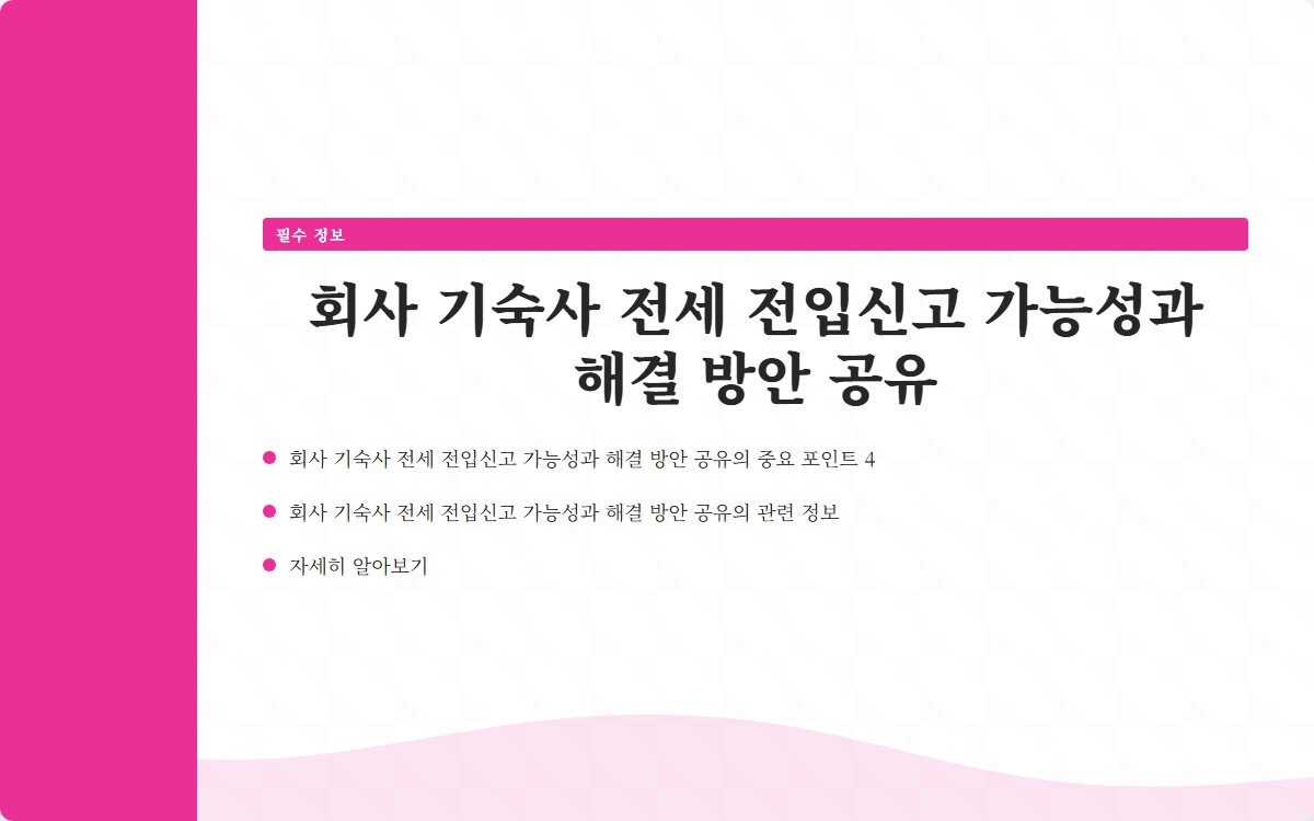 회사 기숙사 전세 전입신고 가능성과 해결 방안 공유